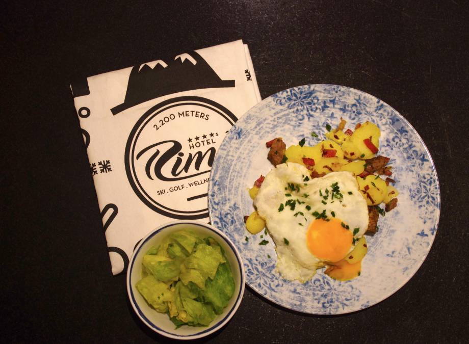 3. Die Eier in einer zweiten Pfanne in Butter zu Spiegeleiern braten. Das Tiroler Gröstl mit den Spiegeleiern und klein gehacktem Schnittlauch anrichten. Dazu passt ein grüner Salat.