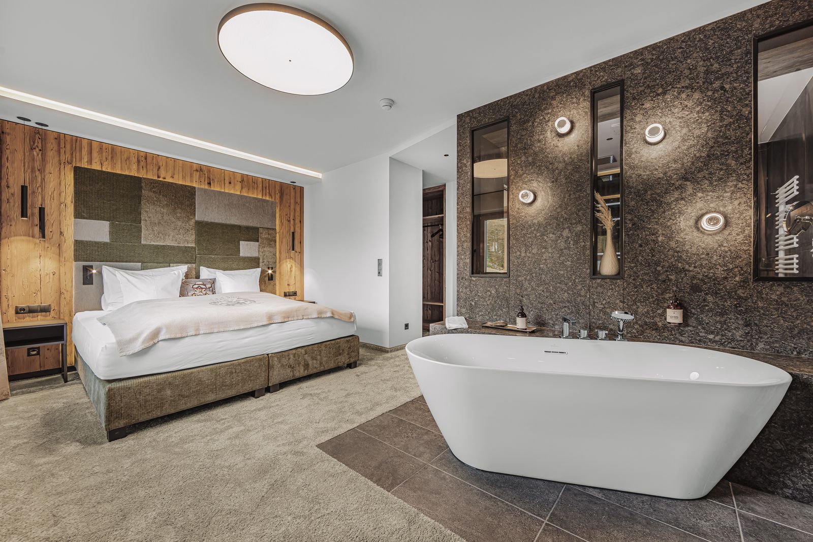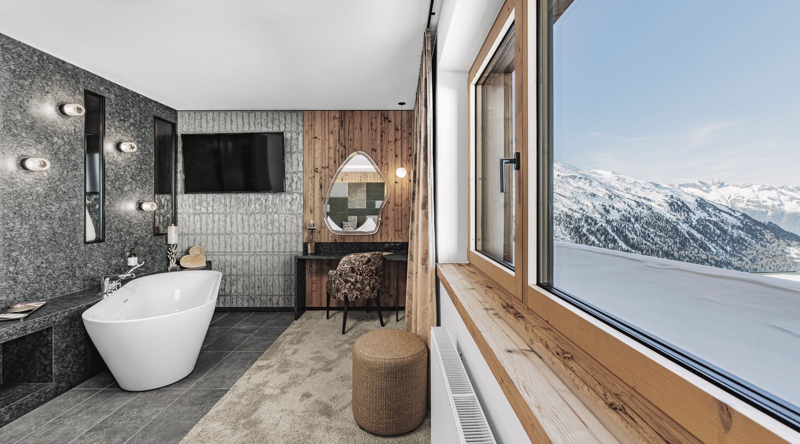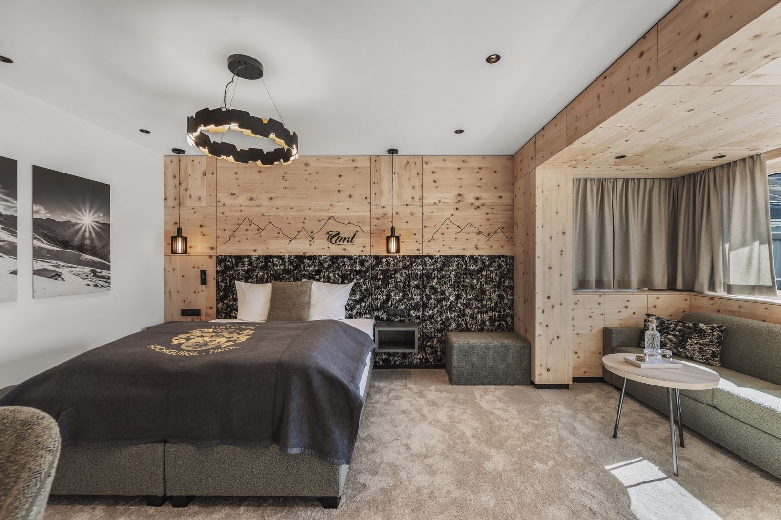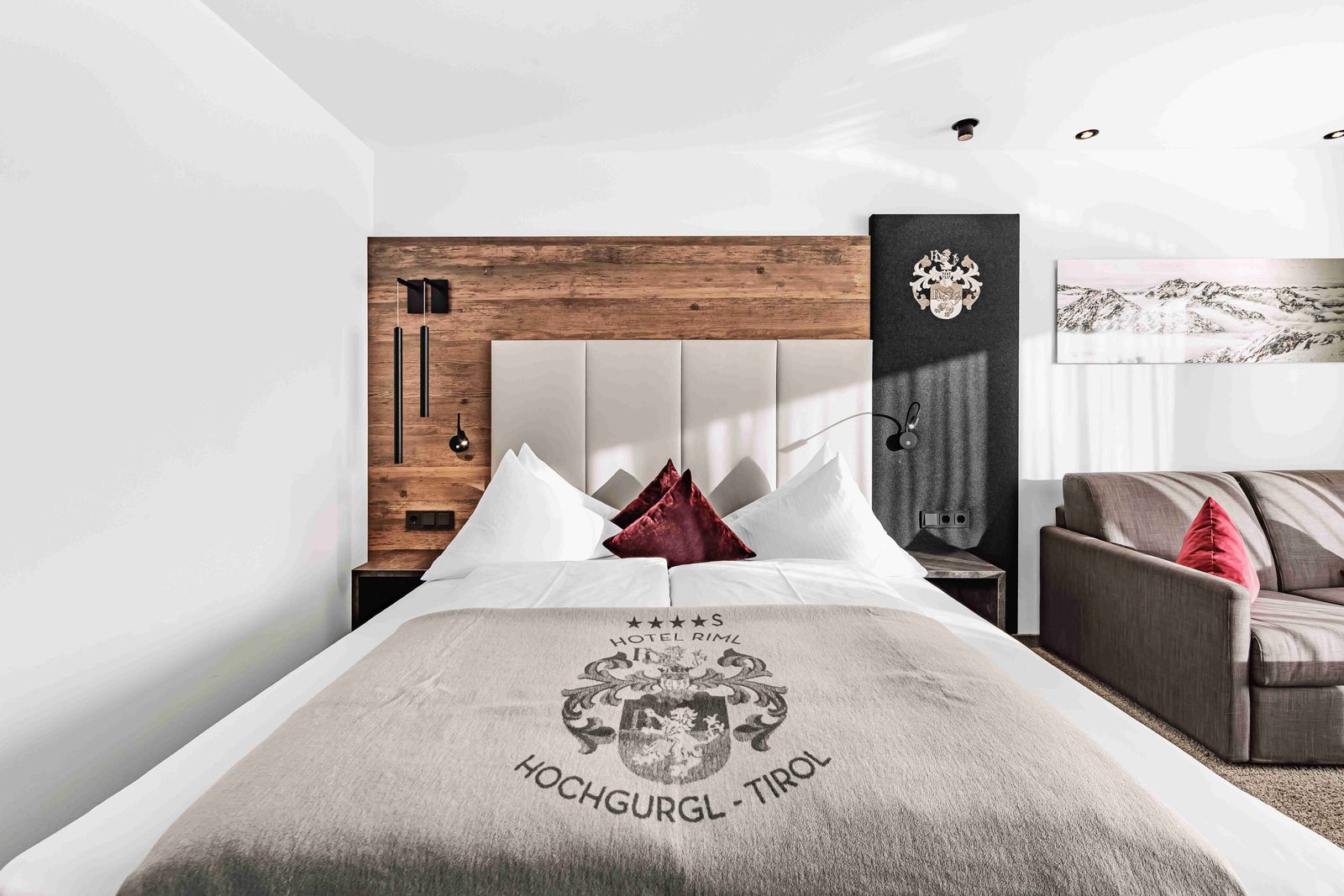 • In den komfortablen und geschmackvoll eingerichteten Suiten und Zimmern im Hotel Riml fällt es leicht, zur Ruhe zu kommen. Privatsphäre und Exklusivität sind in dieser exponierten Lage hoch oben über dem Ötztal zu Hause. Luxus trifft hier auf modernen Alpin-Style. Hier haben Sie Platz genug, um sich ausgiebig zu erholen. Bitte beachten Sie, dass nur ein Zimmer pro Kategorie fotografiert wurde. Es kann daher zu Abweichungen von den tatsächlichen Zimmern und Grundrissen kommen.
