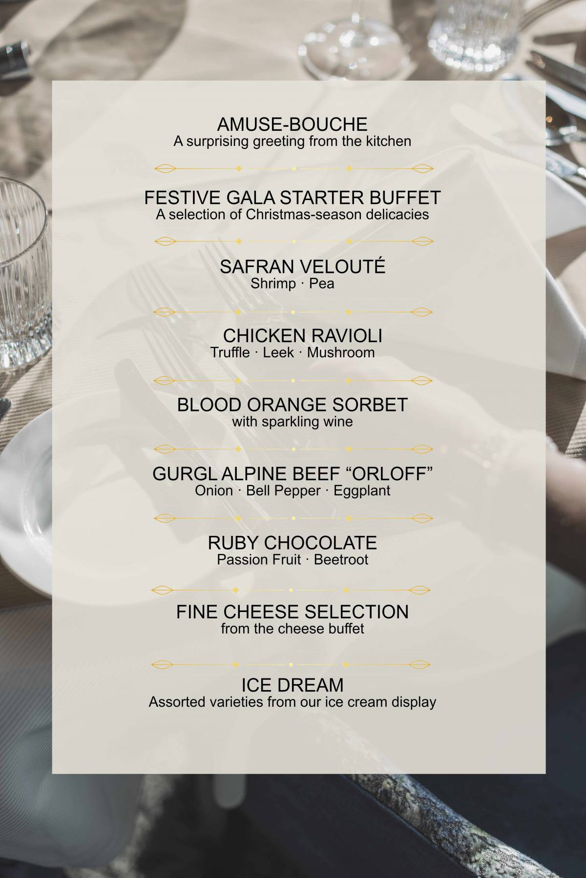 We serve a glass of sparkling wine or our house punch as a welcome drink before accompanying you on an evening full of enjoyment and alpine Christmas magic.